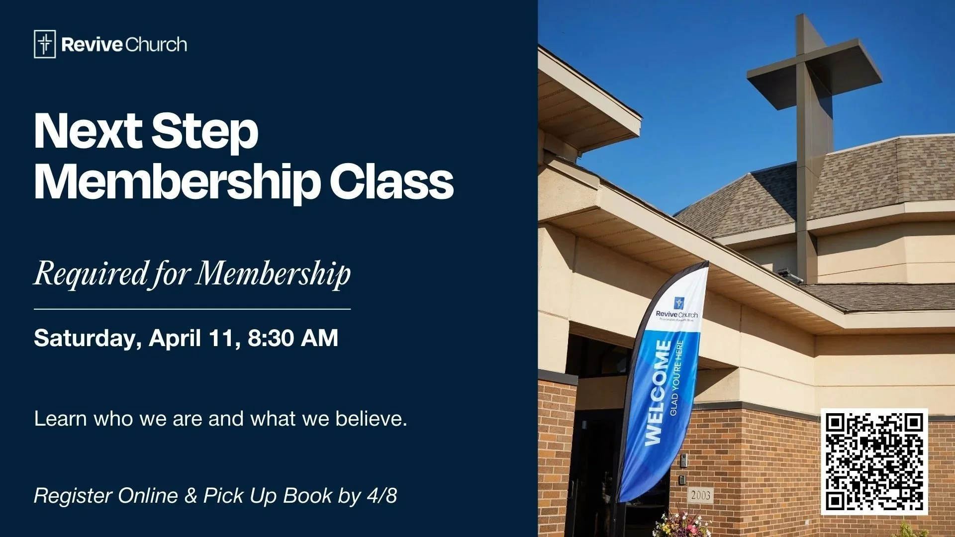 If you're interested in learning more about Revive Church, the Next Step Membership Class is for you. You'll learn who we are, what we believe, what ministries we offer, why we do what we do...and more! This class is required for church membership.